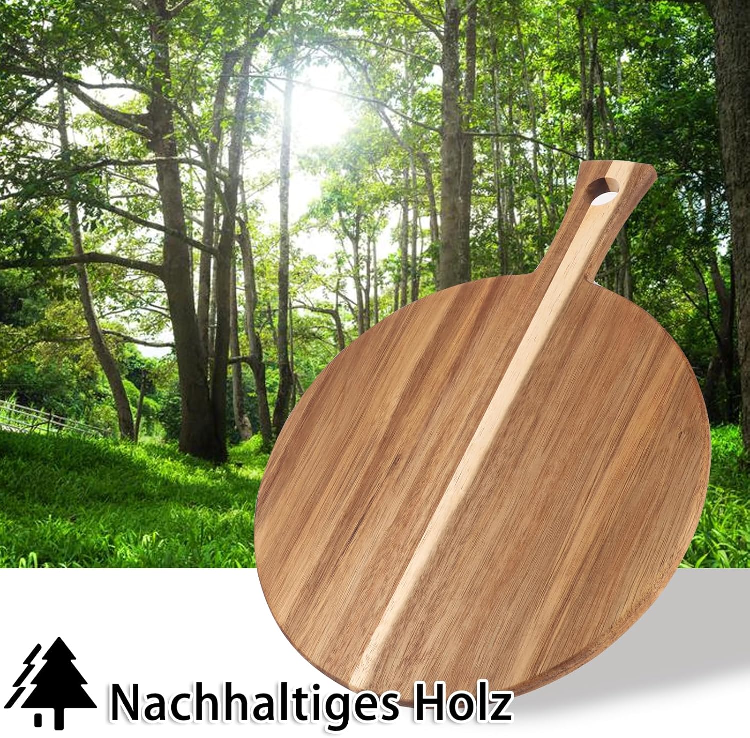 Die natürliche Holzoberfläche sorgt für eine angenehme Haptik und ist zugleich schonend für Küchenmesser. Durch die großzügige Größe von 40 cm bietet das Brett ausreichend Platz für ganze Pizzen oder größere Backwaren.