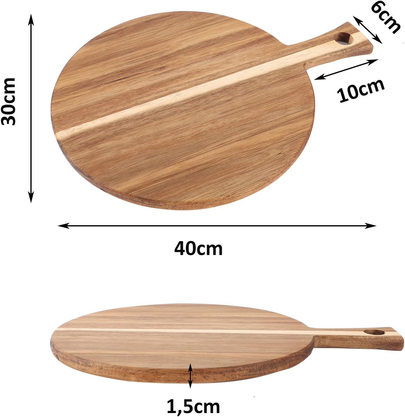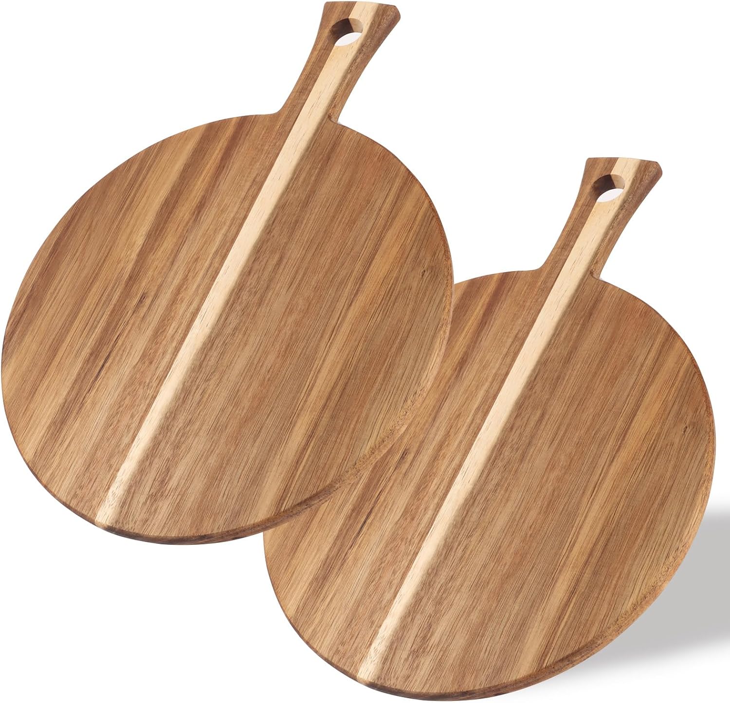 2er-Set Pizzabrett aus Holz mit Griff – Rundes Servier- & Schneidebrett 40 cm
